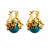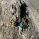 The Calypso Earrings feature a mesmerising turquoise pearl delicately set within a beautifully designed frame reminiscent of a coral reef. The rich hue of the stone adds a pop of colour to your look and looks stunning with a little tan.