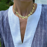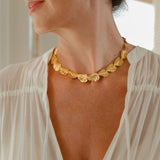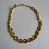 The tropical Rimba Necklace brings the jungle around your neck. The chocker necklace is made out of several different sized leaves that are connected with each other. The back is adjustable. The necklace looks stunning from day to night and with every style of outfit - whether worn with a beautiful dress, one of our kaftans or a pair of jeans and a crisp white shirt, this necklace will add something special to your outfit.