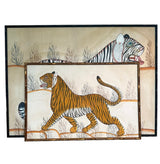 These incredible Tigers from India, are hand painted on cotton canvas by a small family owned business since the 1970’s. Each piece is totally unique and available only once as is. They are available in four different sizes and three different colours.