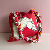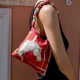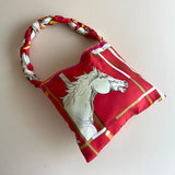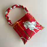 This particular piece is made using an Hermès Silk Carré ‘Saut D'obstacles’ and features a braided handle.