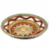 The Ichika basket is handcrafted by artisans in the Guatemalan Highlands using ancient techniques. Each piece is delicately handwoven from a combination of native pine needles with Raffia in light green as well as purple and red accents.