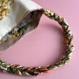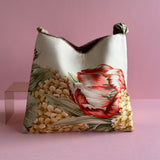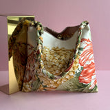 This particular piece is made using a vintage GUCCI silk scarf with a beautiful Hydrangea and Tulip pattern and features a braided handle.