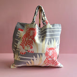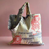 This particular piece is made using one whole vintage Hermès silk Carré 'Tigres Dans les Herbes' and comes with a small braided handle, as well as a long strap to wear the bag as a crossbody. A totally unique piece that you won’t find again.