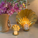 The Scallop Shell Candleholders are entirely handmade in India from solid thin brass. We developed these stunning pieces to be either hung on the wall or to be placed on a console table. The little feet protect your table from scratches.