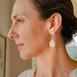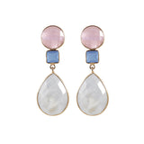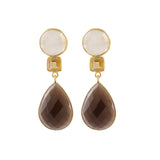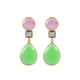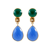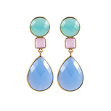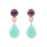 These multi-toned dangling earrings are the perfect addition to our resort wear collection. They are made of solid sterling silver and 24K gold plating and three semiprecious stones, that were handcrafted by a family-owned jeweller in Jaipur, India.