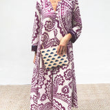 Made out of Jari Lurex and Silk Thread on a cotton canvas base, with suede lining and leather tassel. Machine embroidered by artisans in Jaipur.