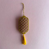 Each ornament is embroidered on both sides with various types of beads, silk, gold and silver lurex.