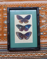 Antique hand coloured Butterfly Prints in Bamboo frame ~ various