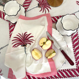 The Palm block-printed napkins are a great addition to our matching placemats and tablecloths. The beautiful palms are printed by hand in multiple layers on cotton by a very small family-owned workshop with highly skilled artisans in Jaipur, India. They come in a pouch with a set of six pieces.