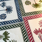 The Palm placemats are available in three different beautiful colours in a set of four pieces. They are block-printed by hand in multiple layers on cotton by a very small family-owned workshop with highly skilled artisans in Jaipur, India. Set your table together with our matching tablecloths and napkins for a tone in tone look or mix-and match them with one of our other pieces.