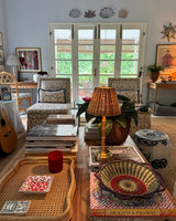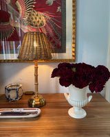 These beautiful and practical wireless table lamps are perfect for all those places you do not have a plug for a lamp or do not want to see any cables. Suitable for indoor and outdoor-use, they will add a warm and cozy glow to any setting. We also love to add them as an additional light source on the table, when you would like to have some more direct light. The lamp is made with a real bamboo pole, woven rattan shade and sturdy metal base with brass finish. It's the perfect table lamp for the tropics.