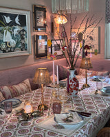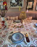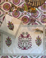 The Mughal placemats with matching napkins are the perfect addition to our Mughal Jaal tablecloth. The traditional Indian floral Mughal pattern is block-printed by hand on durable cotton canvas. The thicker cotton ensures that possible spillages and stains won't get soaked up into the fabric as fast as classic cotton and gives your tablecloth a longer life. But they are equally beautiful just on its own for your breakfast table for example.
