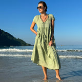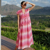100% cotton, wash with similar colours and a mild detergent. The plain coloured cotton dresses are lined, handwoven Ikat dresses are unlined as the material is slightly thicker Air-dry or tumble dry on the lowest setting |