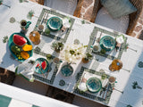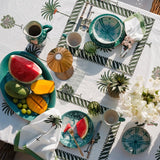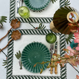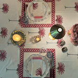 The Palm block-printed table cloths are available as a 6- and 8-seater. The beautiful palms are printed by hand in multiple layers on cotton by a very small family-owned workshop with highly skilled artisans in Jaipur, India. Set your table together with our matching placemats and napkins for a tone in tone look or mix-and match with one of our other placemats.