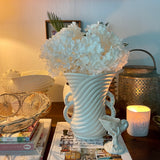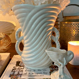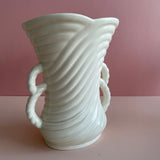 A Mid Century ceramic rope vase from England. This stunning piece is in perfect condition without any flaws. Only the flower frog, that used to sit on top of the vase is missing, which however does not affect the beauty or usage of this classic vase.